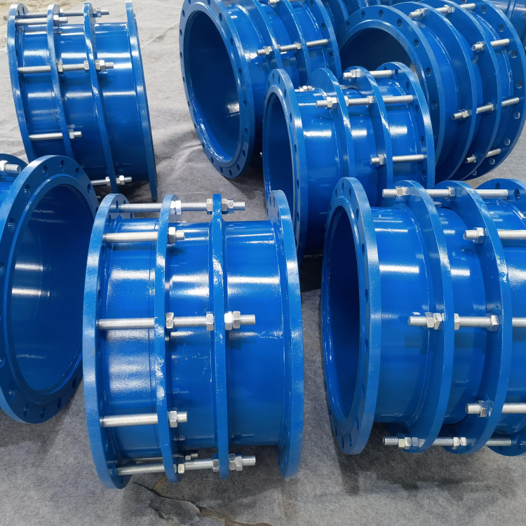 法兰式松套伸缩接头产品结构设计合理,密封性能可靠,安装,拆卸简便,适合连接输送水、油、气及颗粒粉状物的钢管、铸铁管、球墨铸铁管、PVC管、ABS等等。松套伸缩节安装在管道上后,拧紧螺母弹性密封圈,在螺母压盖的作用下依靠相互斜度,紧压在管子外圈密封和连接作用。当温度变化时管子能在接头中间自由的伸缩,当地基下沉,管子能偏斜,并确保密封无渗漏,从而起到自动补偿的目的。